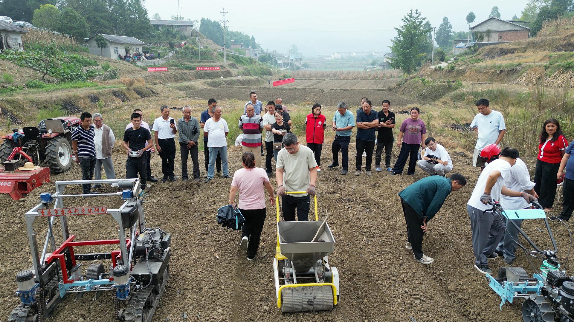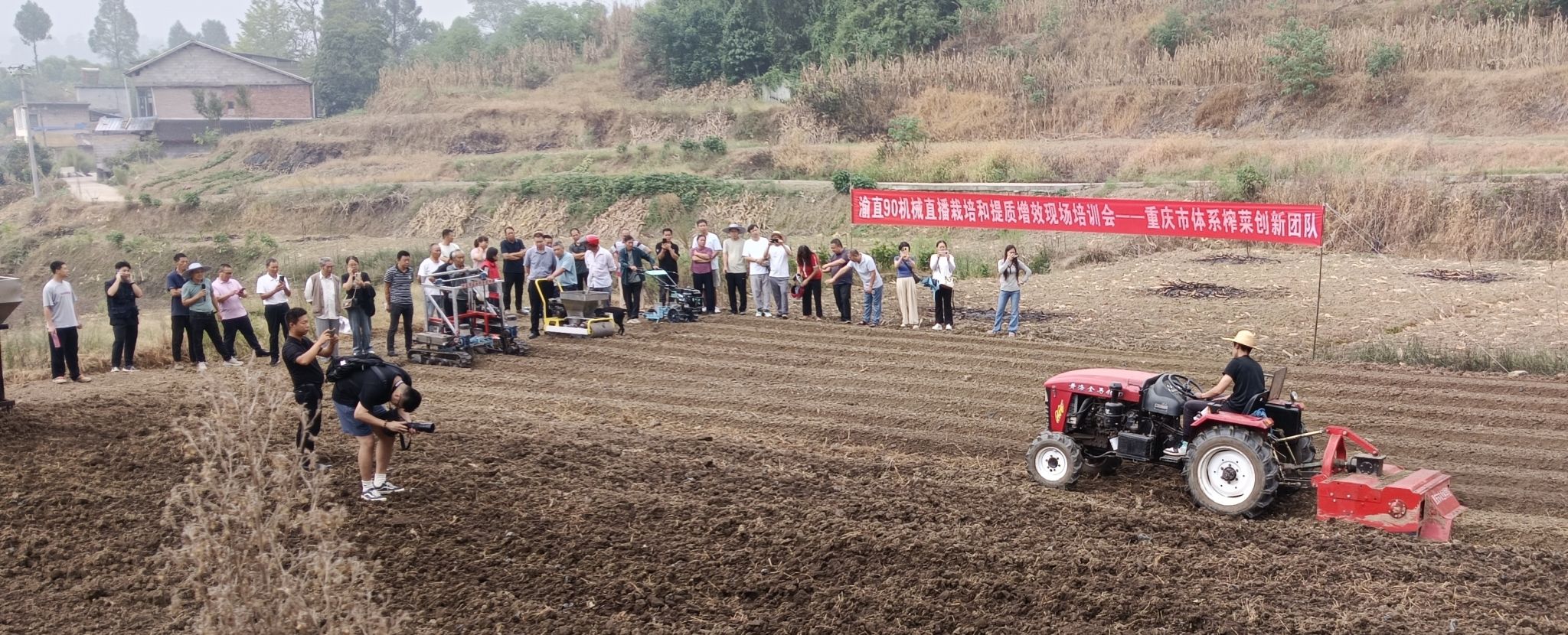 2025年9月9日,我院组织的“涪陵榨菜提质增效暨‘渝直 90’机械直播栽培技术培训会”在涪陵区罗云镇干龙坝村顺利举行,会上展示了直播播种机器人等榨菜原料栽培农机和有机肥替代化肥的榨菜原料栽培技术。