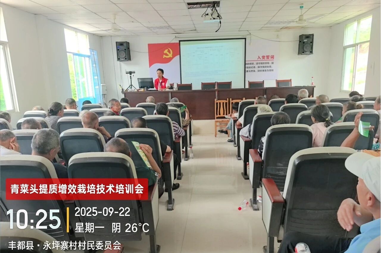 2025年9月22日,我院依托重庆市农委“青菜头提质增效示范”项目,在垫江县砚台镇、丰都仁沙镇开展“‘渝直90’有机肥替代化肥提质增效技术培训”,以“送良种+送肥料+送技术”的服务模式,为当地产业注入科技动力。
