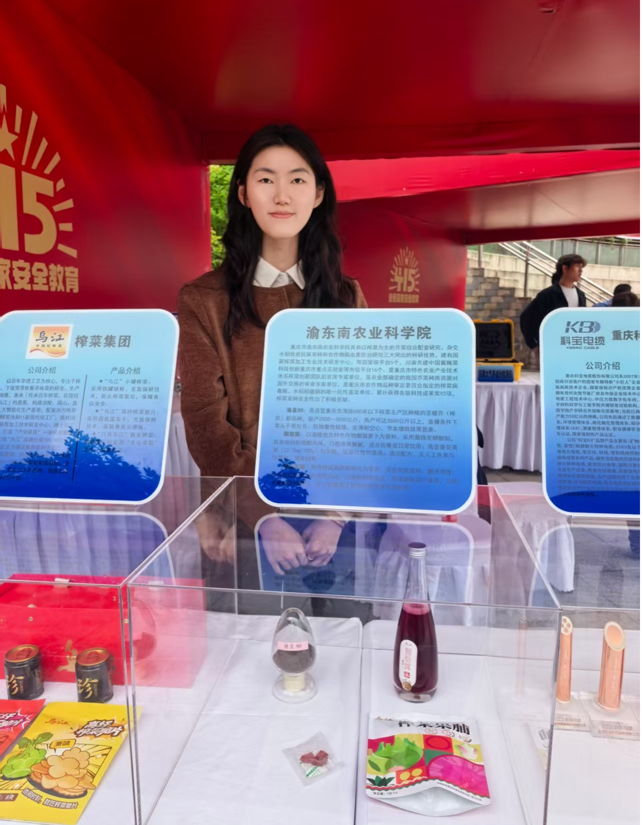 我院积极参与此次活动,在现场集中展示了近年来的一系列优质农业科技成果,如高天然花青素功能饮品“胭脂萝卜露”、榨菜新休闲食品“榨菜果脯”等特色农产品,以及优质鲜食玉米品种“涪糯2号”、早市鲜食青菜头品种“渝早100”、部颁一级米水稻良种“陵香优1245”等农业种质资源。通过实物展示、现场讲解,生动呈现了涪陵区地方特色农业产业创新发展与粮食安全、种业安全保障工作成效,有效助力了涪陵区筑牢总体国家安全观基层防线、普及安全理念。